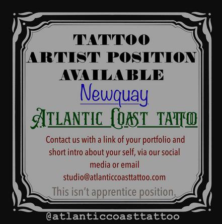 We are proud to be one of the largest and most well-known studios in Cornwall. Our team consists of highly talented, multi-award-winning tattoo artists who specialize in a wide range of tattoo styles. We specialize in custom work and love transforming your ideas into tattoos that you will cherish for a lifetime. We also offer smaller tattoos and flash designs on a walk-in basis. If you have any questions or would like to discuss your tattoo ideas in more detail, please don’t hesitate to reach out! For general inquiries, the best way to contact us is through our Facebook page. Alternatively, you can get in touch with individual artists via their Instagram accounts and portfolios listed below. You can also email us at studio@atlanticcoasttattoo.com. For short-notice availability, please call 01637 498050 or message us via our Facebook page.